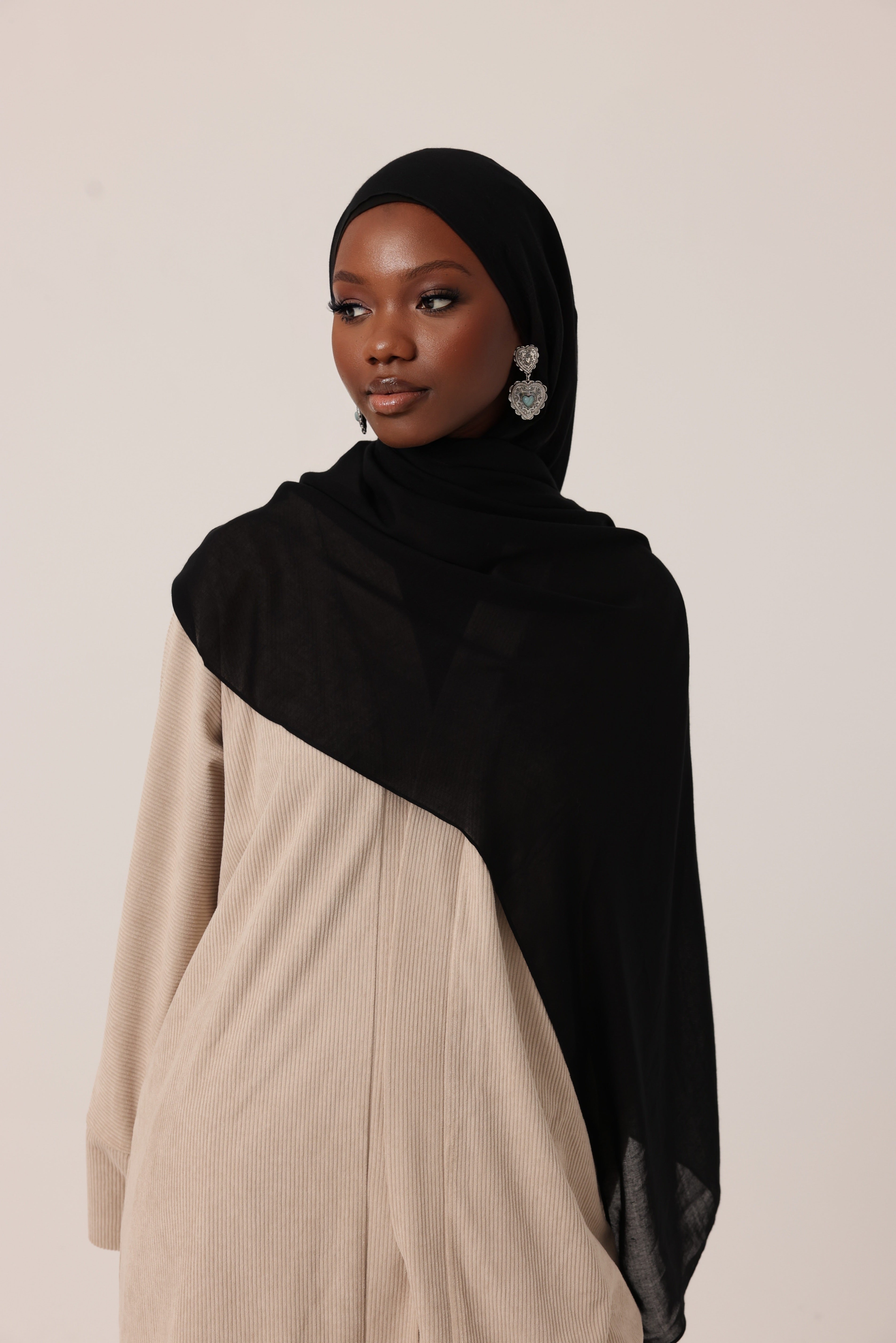 Coal, the black hijab everyone needs in their wardrobe. Classic, timeless and the must have colour to add to your collection.