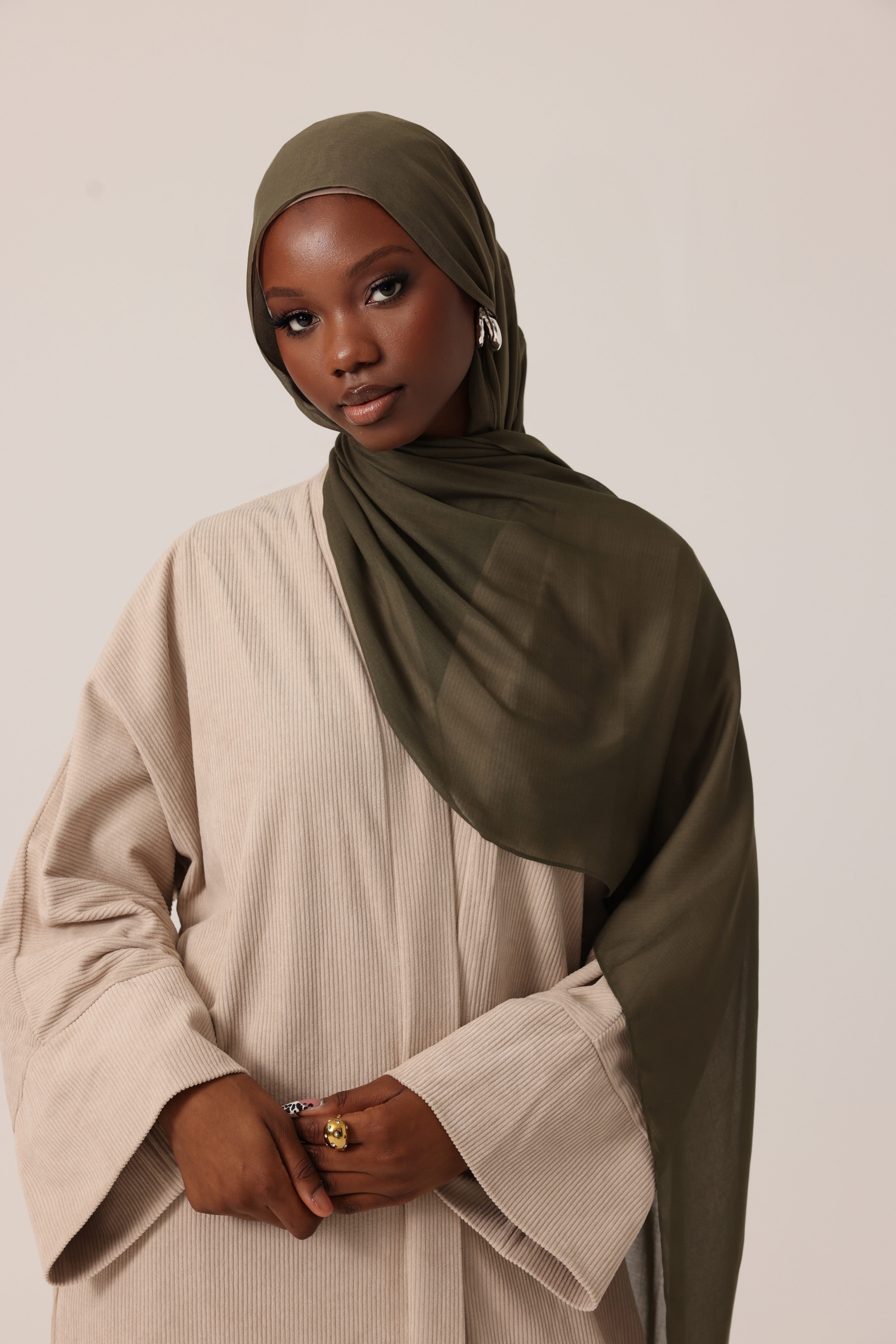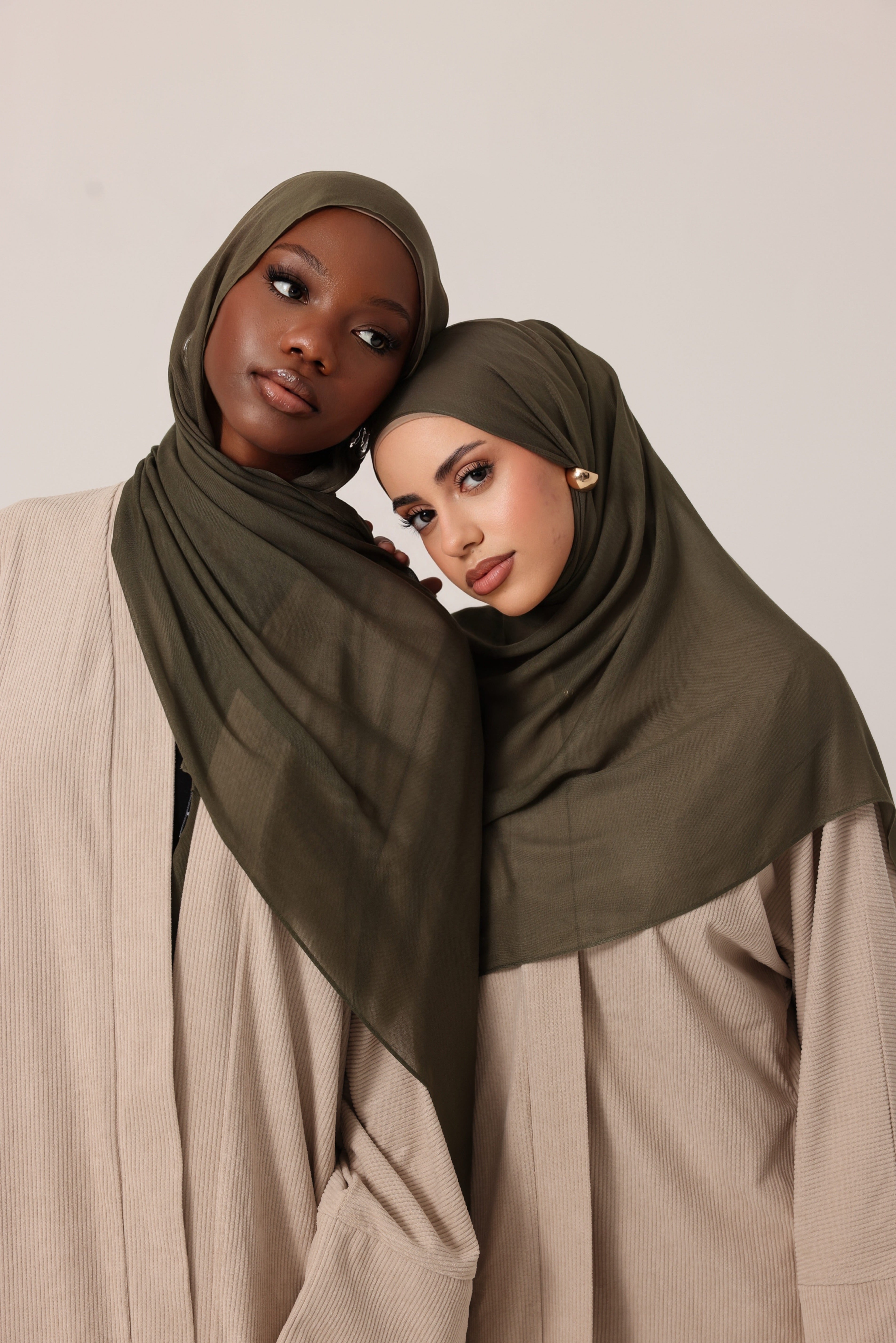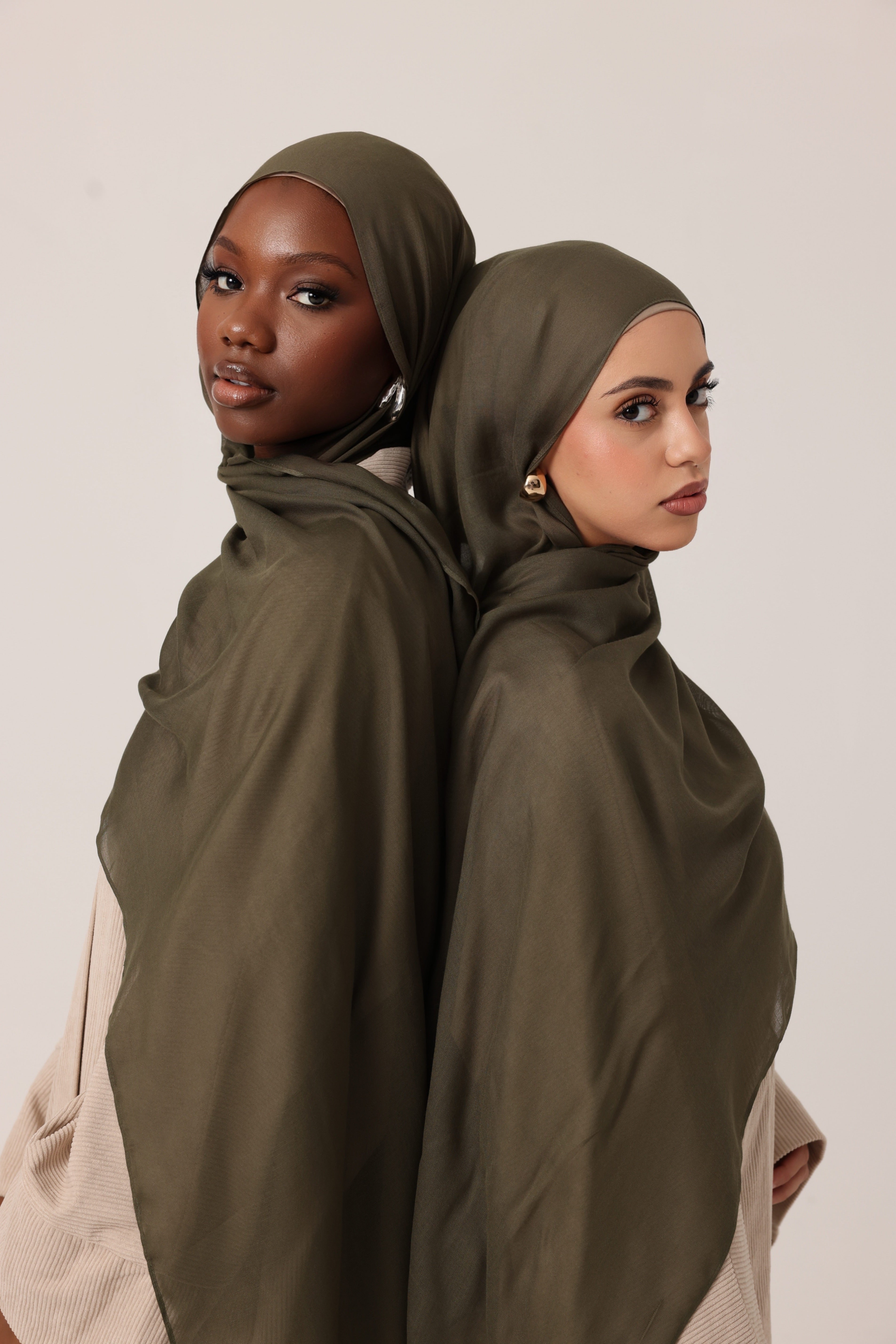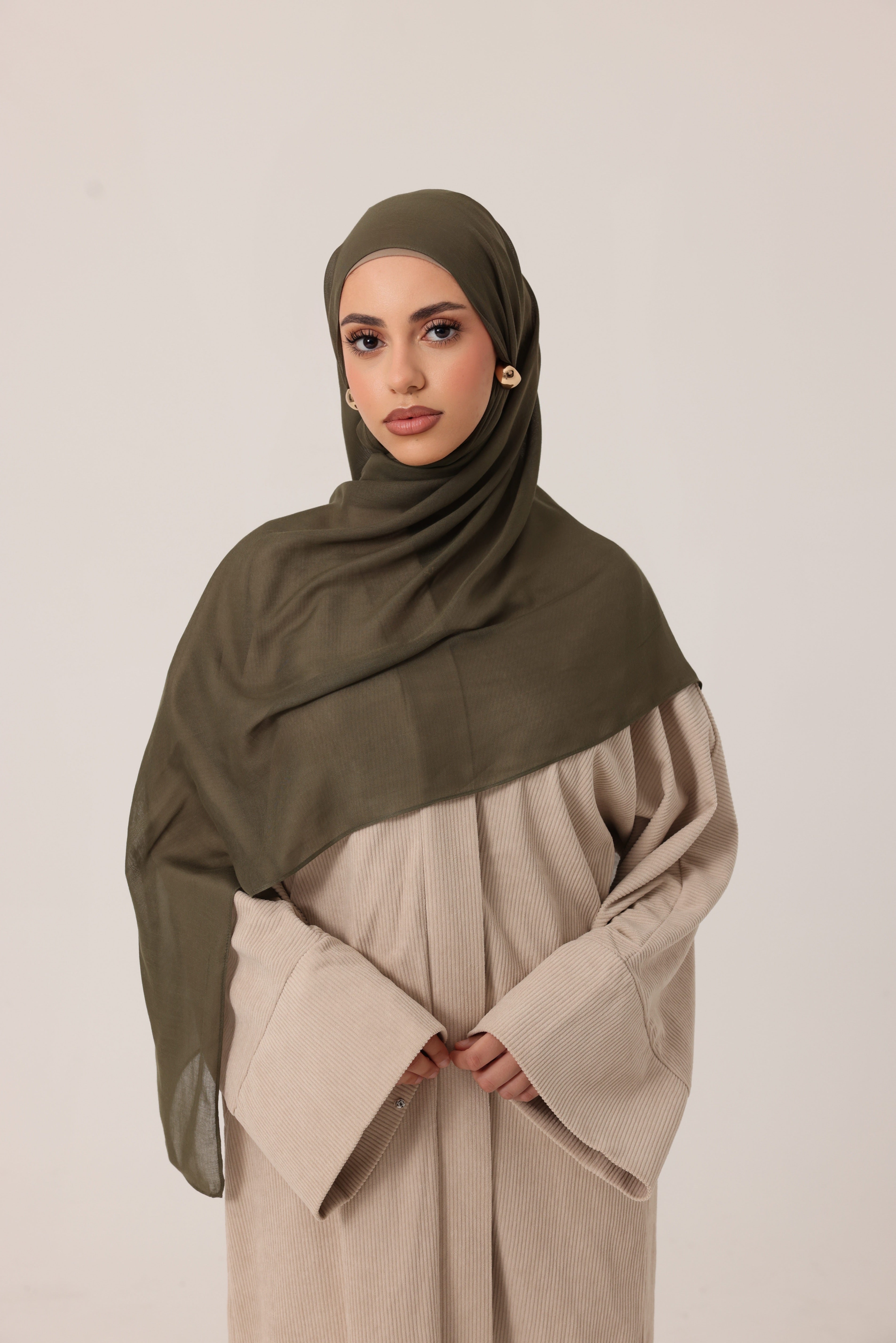Premium modal hijab known for its soft, silky texture and lightweight feel. The drape of modal is fluid and elegant, allowing the hijab to fall beautifully around the face and shoulders.