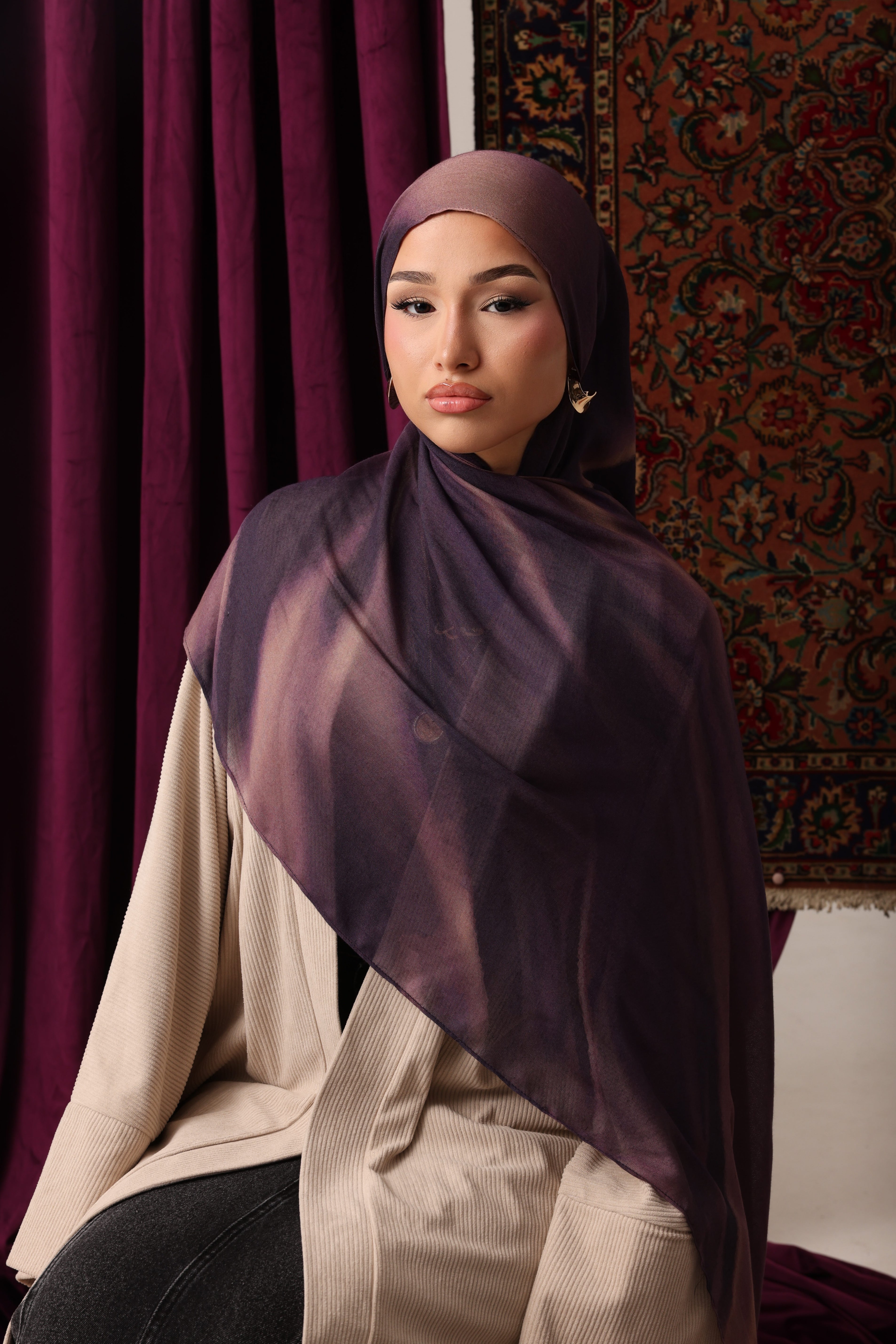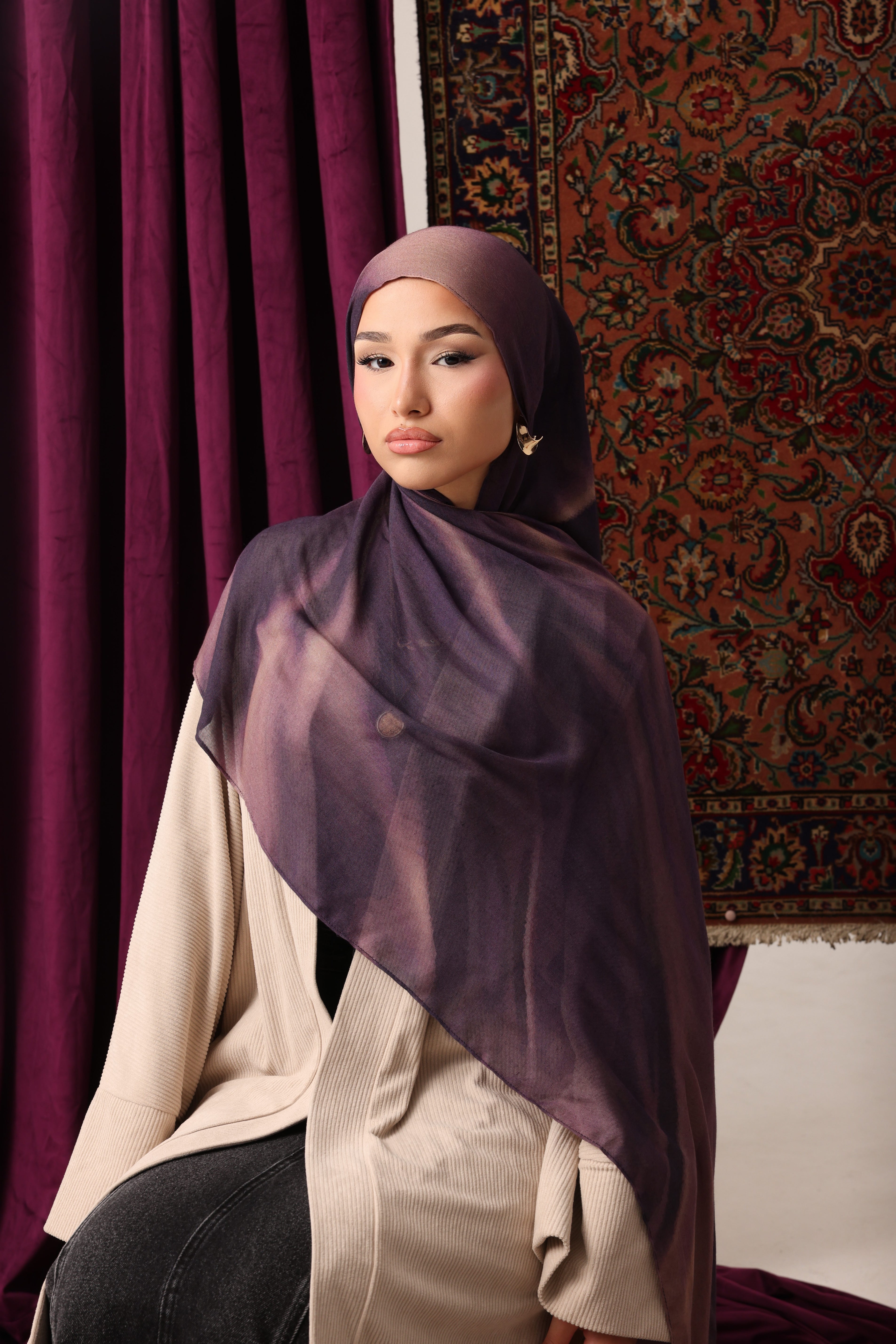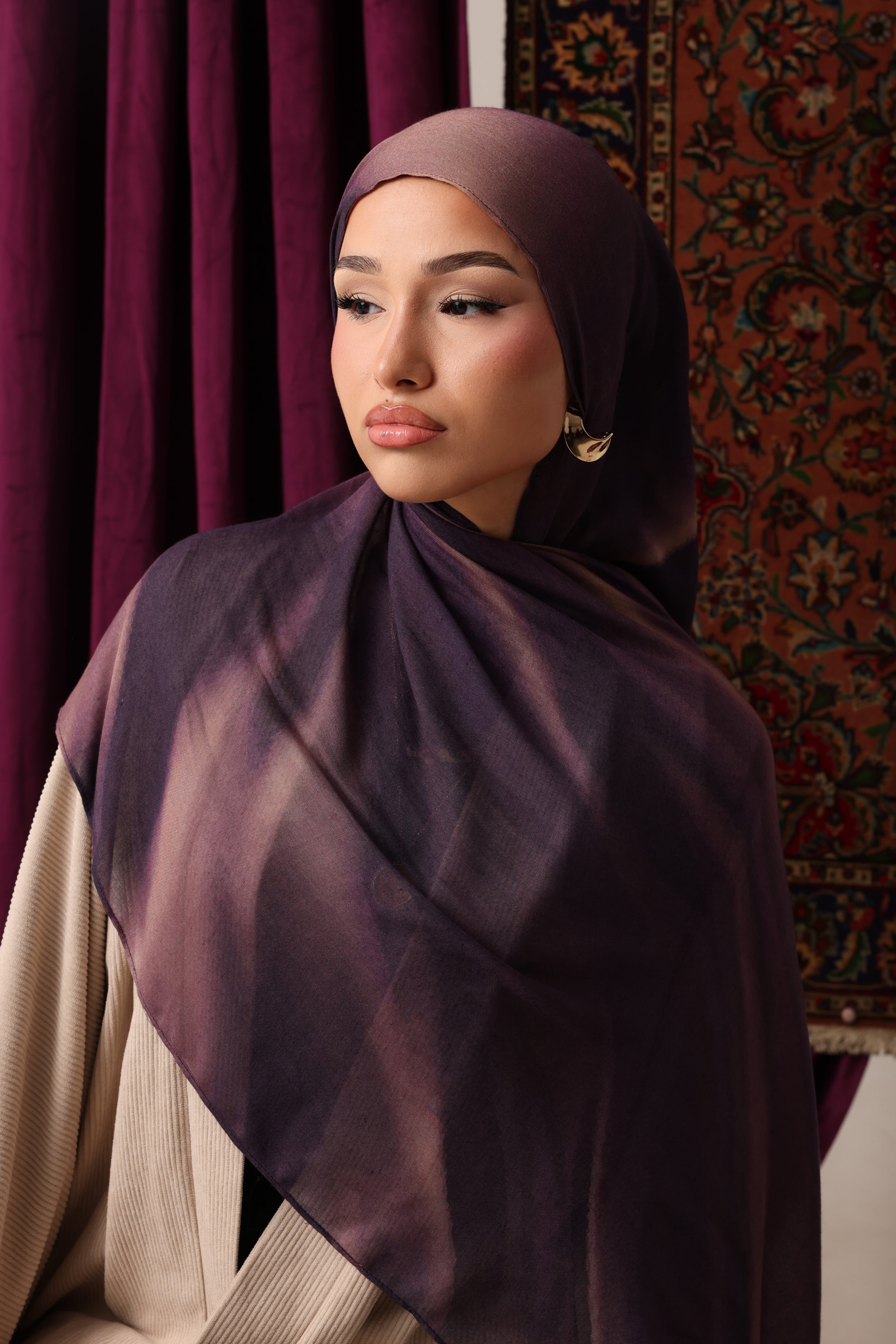 Premium modal hijab known for its soft, silky texture and lightweight feel. The drape of modal is fluid and elegant, allowing the hijab to fall beautifully around the face and shoulders.