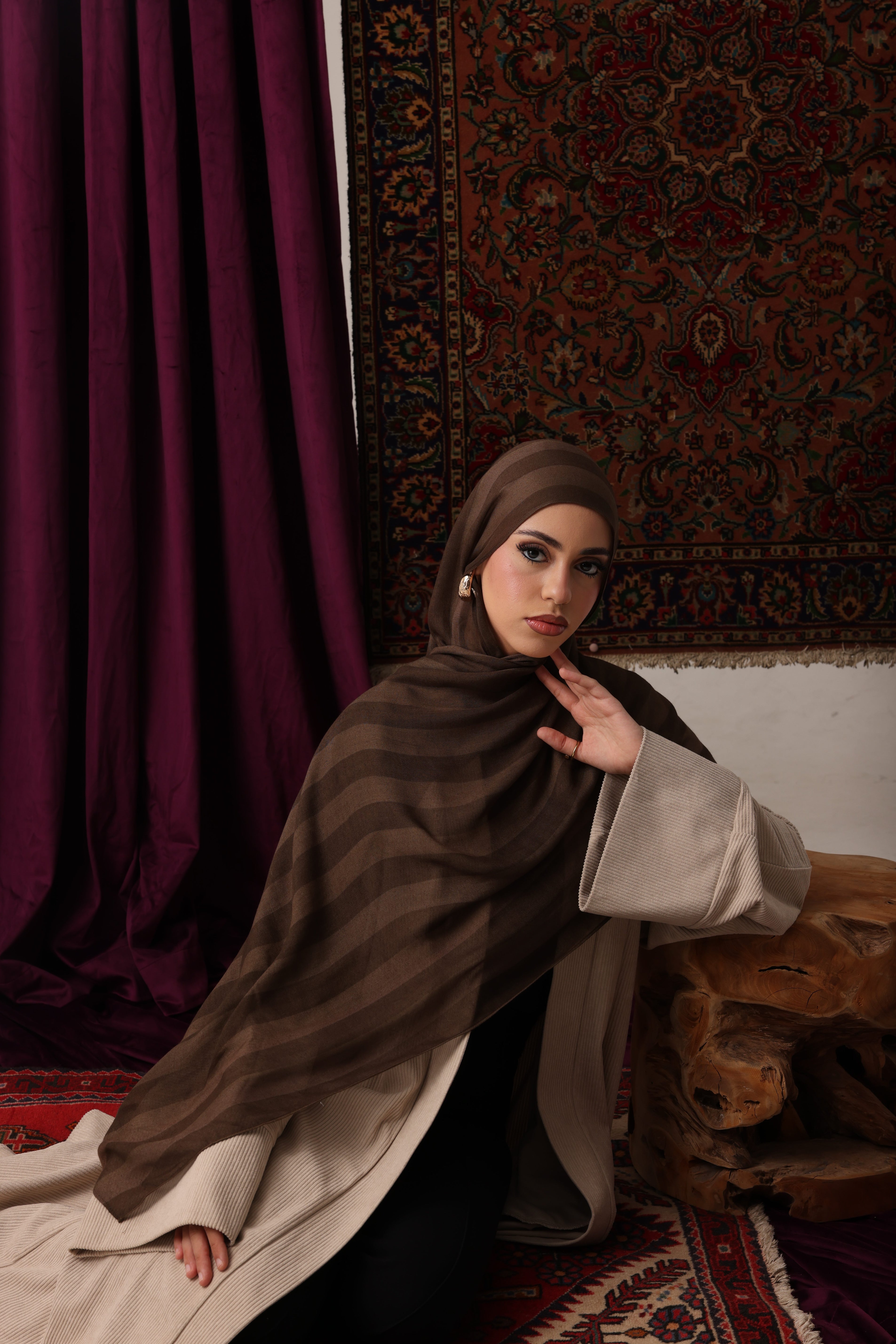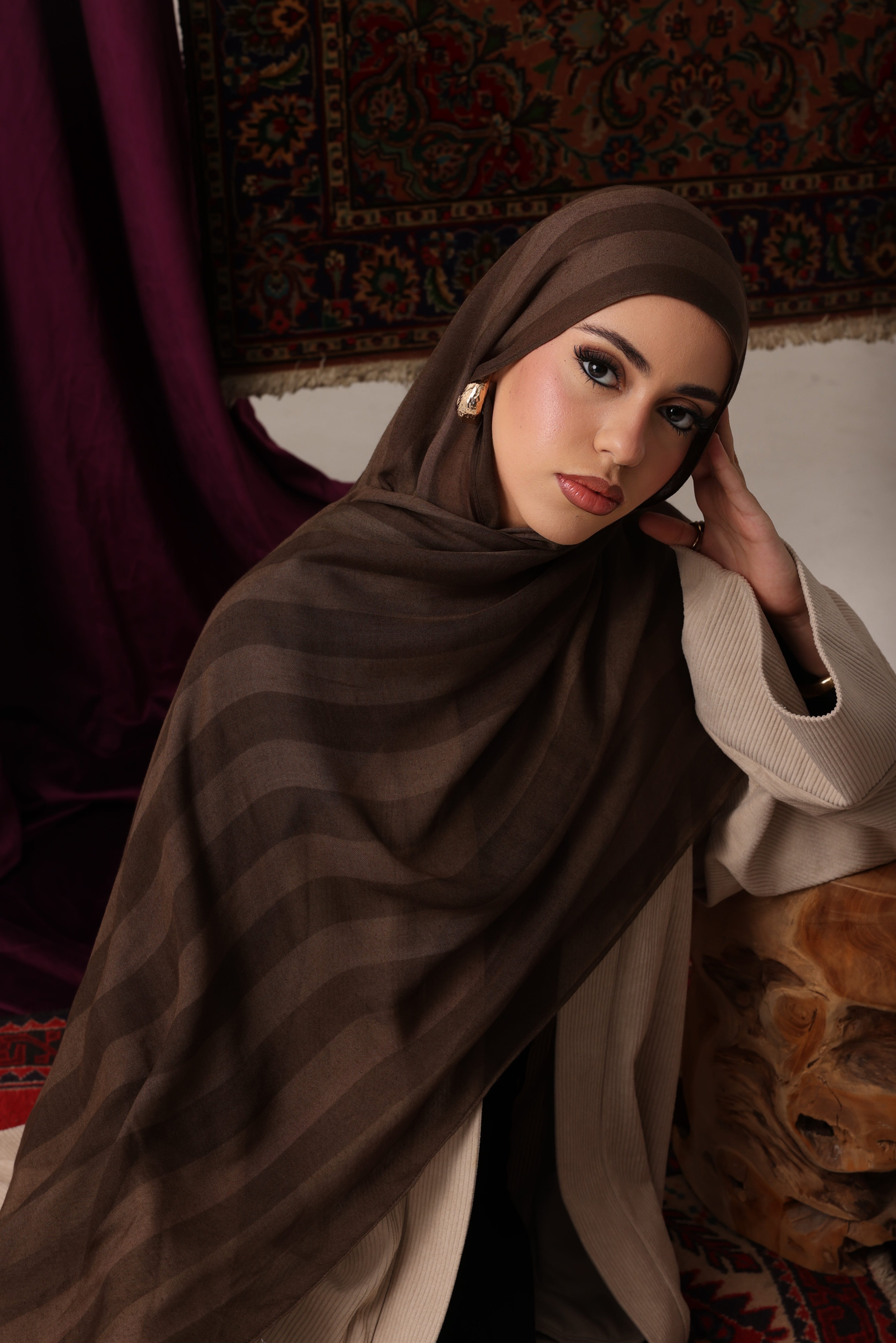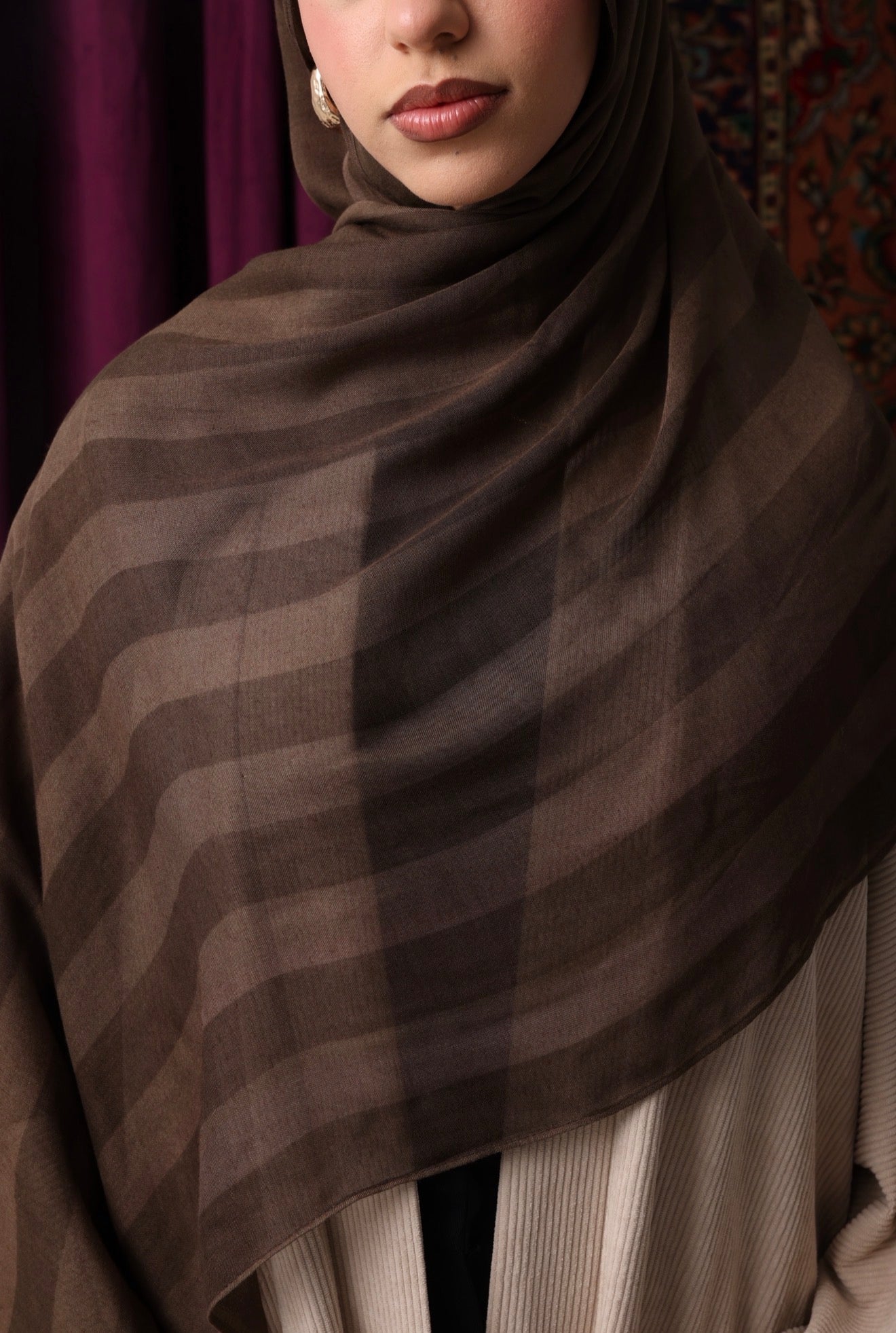 Premium modal hijab known for its soft, silky texture and lightweight feel. The drape of modal is fluid and elegant, allowing the hijab to fall beautifully around the face and shoulders.
