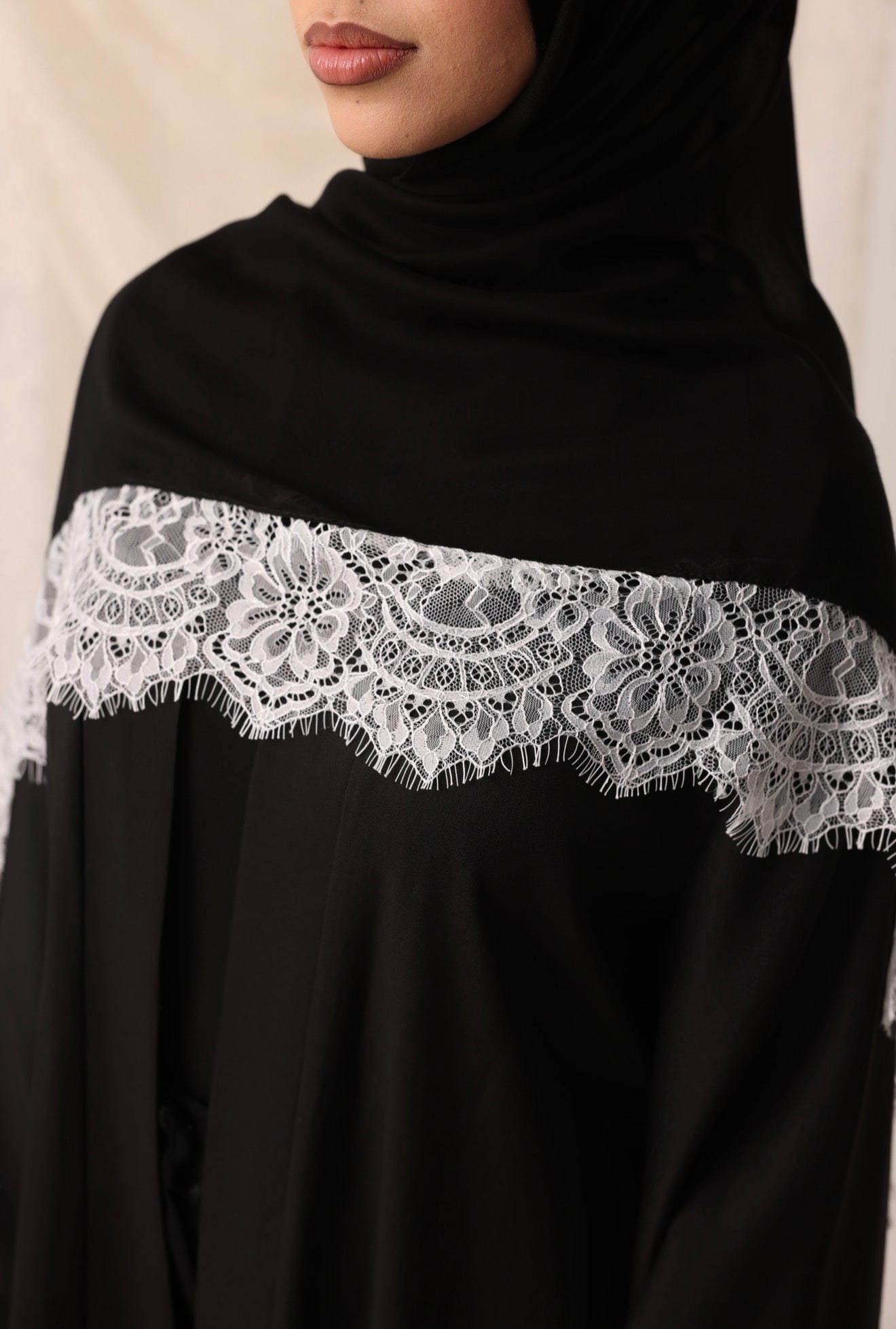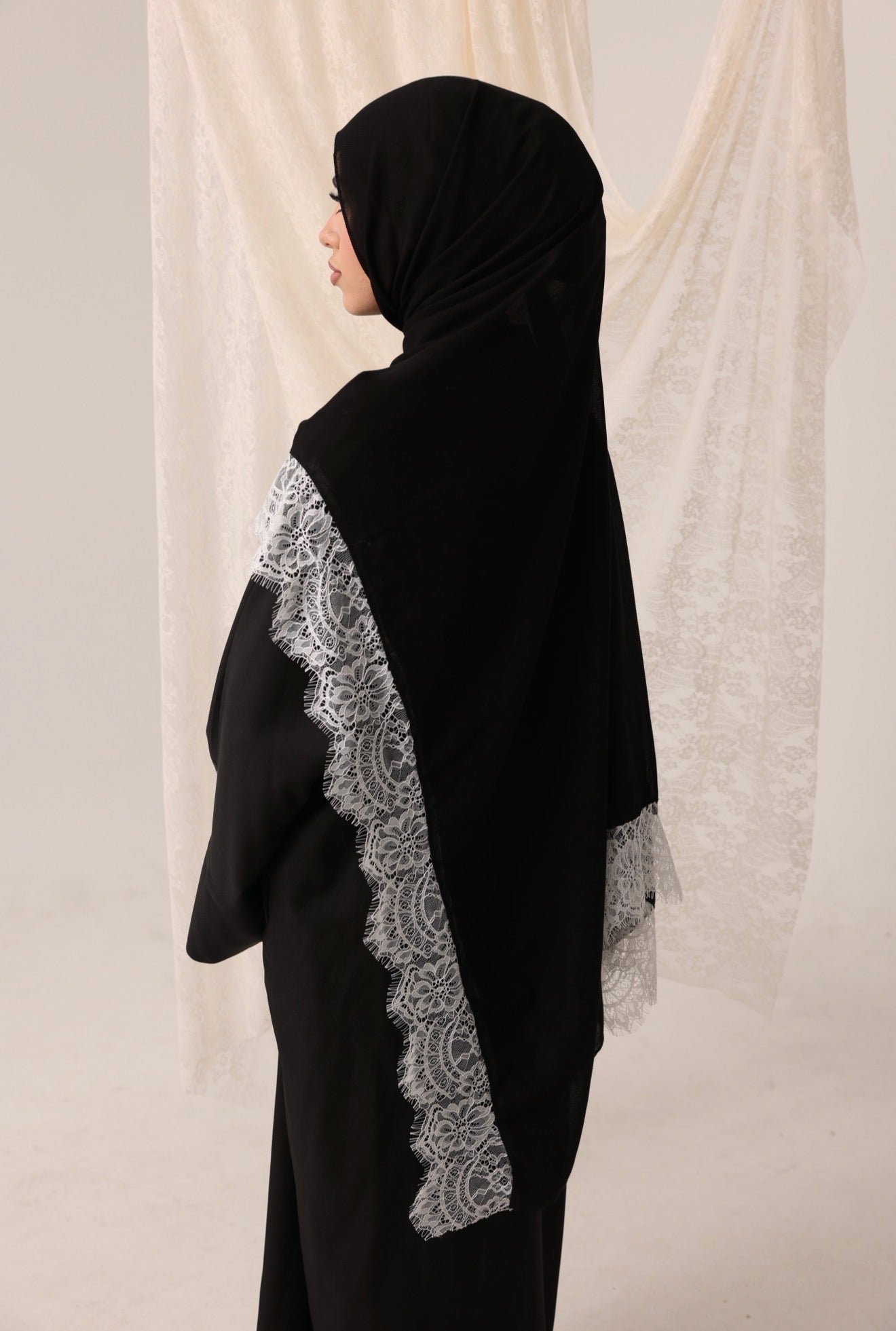 Elevate your modest wardrobe with our signature lace hijab. Crafted from premium modal fabric, this piece drapes effortlessly with a lightweight, breathable fabric that's perfect for all day wear. The delicate lace trim adds a touch of timeless elegance, creating a refined contrast that instantly elevates any look.