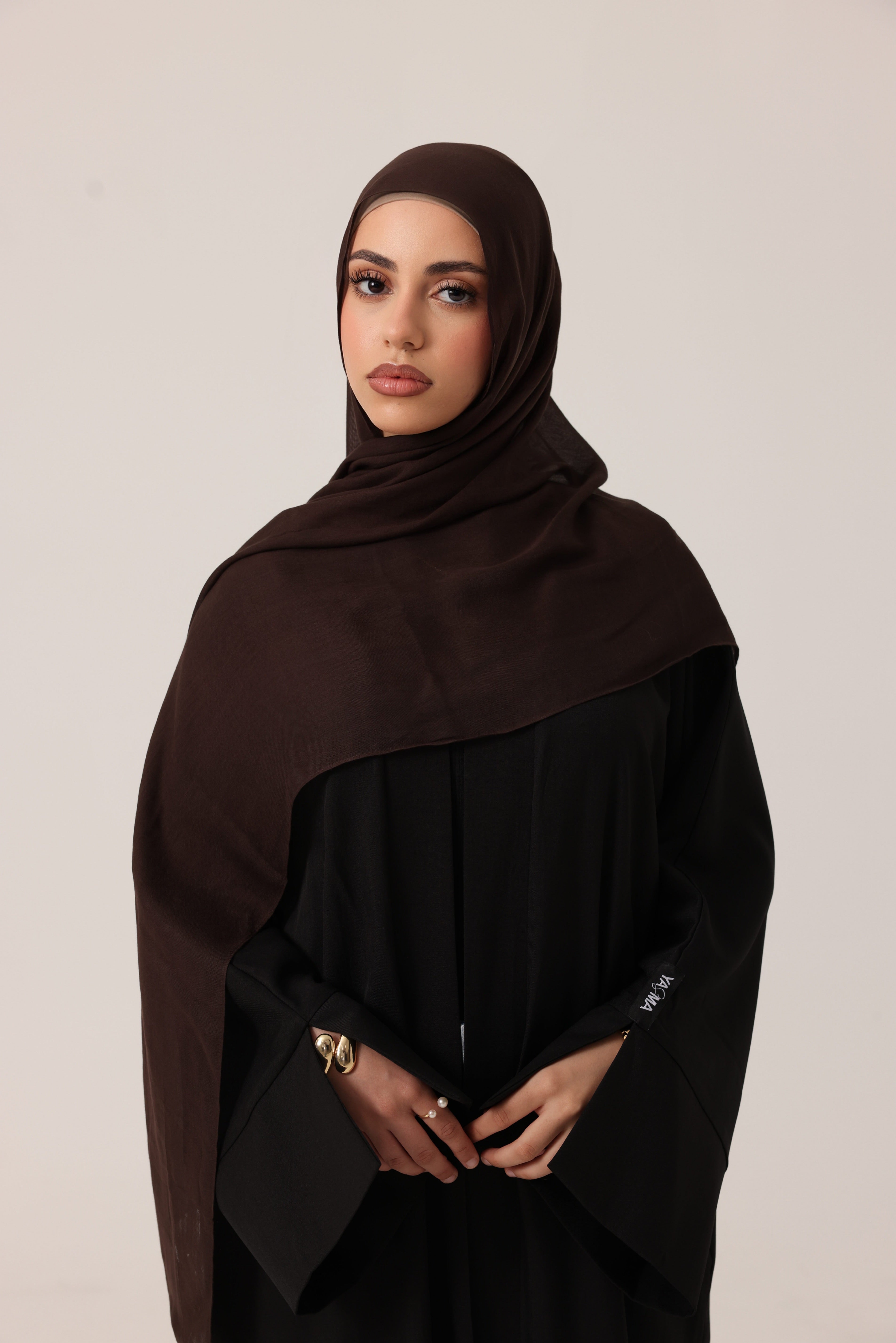 Premium modal hijab known for its soft, silky texture and lightweight feel. The drape of modal is fluid and elegant, allowing the hijab to fall beautifully around the face and shoulders.