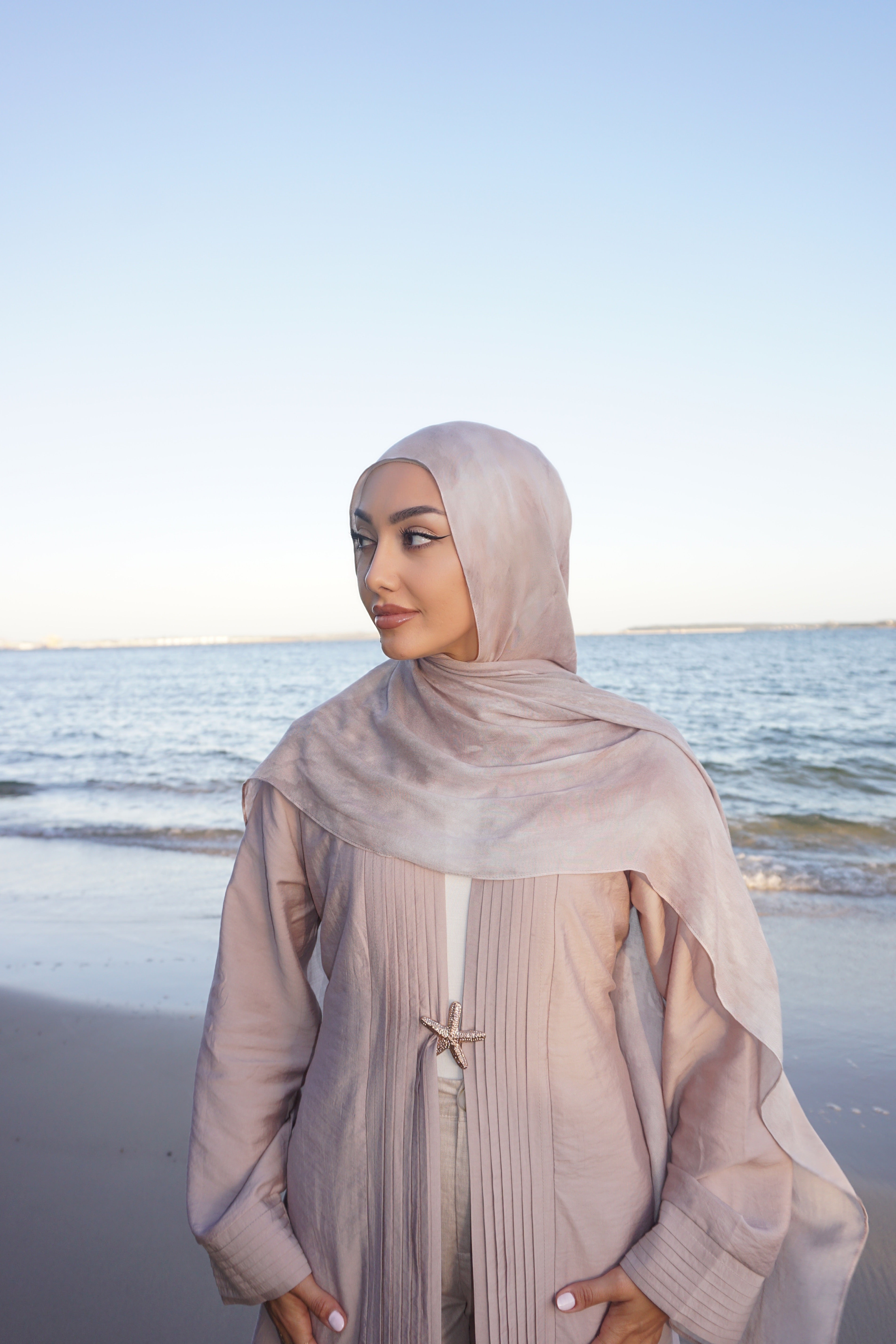 Premium modal hijab known for its soft, silky texture and lightweight feel. The drape of modal is fluid and elegant, allowing the hijab to fall beautifully around the face and shoulders.